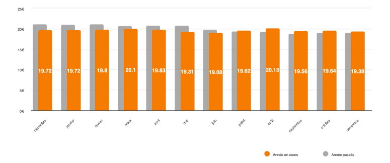 Ce tarif progresse de 1,41 % sur un an, contre 19,11 euros en 2024 ;
