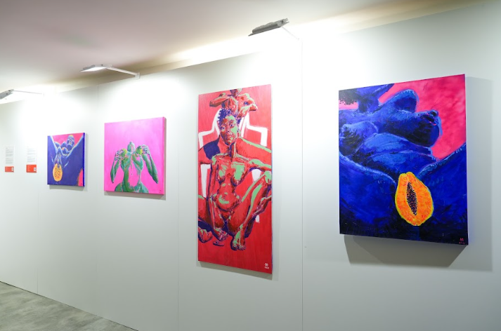Mixi, série Fwi ewotik, et l’autoportrait Naté Tèt, dans le cadre de l’exposition “Pays Mêlé – Empreintes et résilience”, crédit photo : Alex Avidi