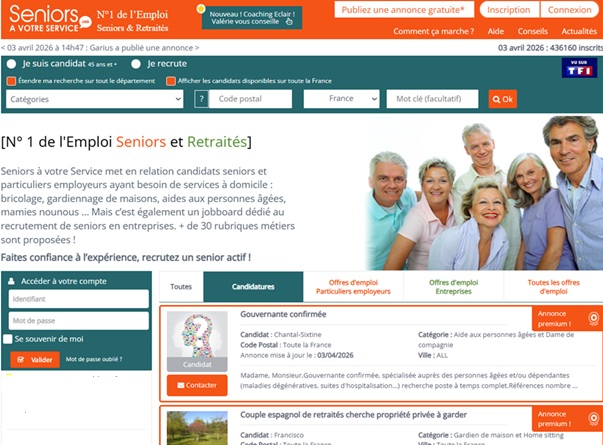 Créée en 2008 par Valérie Gruau, la plateforme Seniors à votre Service facilite la mise en relation entre seniors, retraités et recruteurs (particuliers ou entreprises).