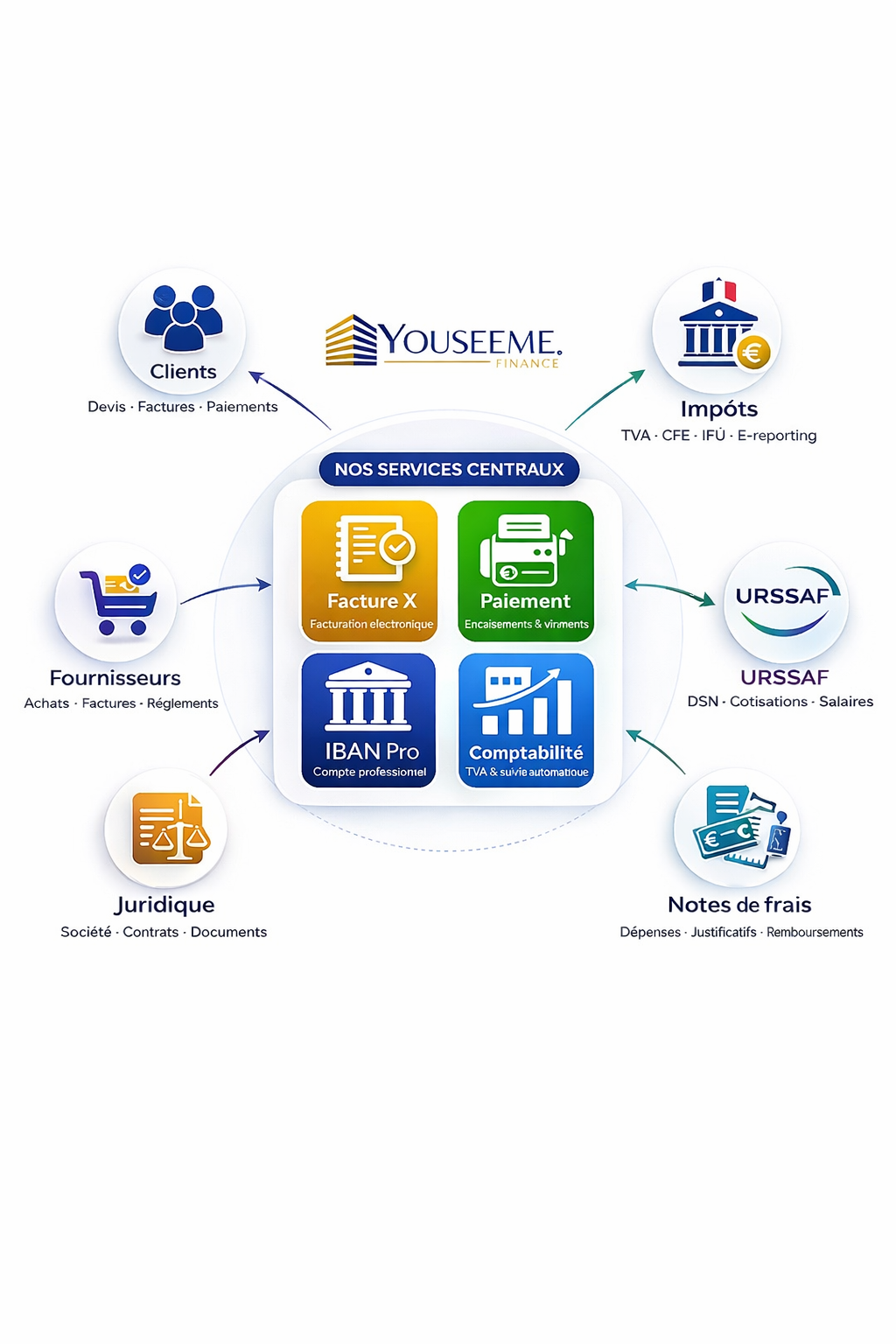 Fondée en 2016 par des ingénieurs spécialisés en informatique et en sécurité, Youseeme est une plateforme de gestion financière et administrative destinée aux indépendants, startups et TPE/PME. Agréée par l’ACPR en qualité d’agent de service de paiement, la société propose un environnement centralisé combinant facturation électronique conforme aux normes françaises (PDP/PA) et au standard européen PEPPOL, compte de paiement avec IBAN, carte Mastercard Business et module d’encaissement par carte (YouPay). L’ouverture d’un compte professionnel s’effectue en huit minutes — l’ensemble des flux financiers, des encaissements et des données comptables est ensuite géré au sein d’un même outil, limitant les frictions et les risques d’erreur.