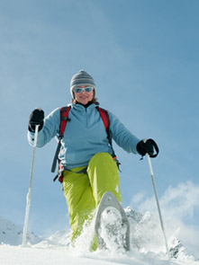 Randonnée en raquettes : parcours nocturne ou en journée – à partir de 6 ans (randonnée journée) et 8 ans (randonnée nocturne)