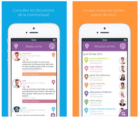 L’application permet de trouver des sorties proches de soi, grâce à la recherche géolocalisée. Il est également possible de créer une sortie ou un événement autour d’une thématique ou d’un lieu.