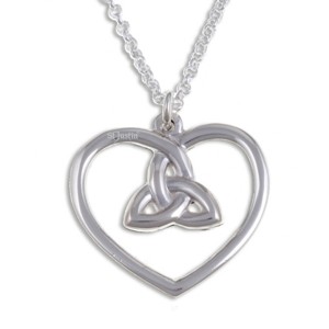 - le pendentif cœur avec un nœud celtique, en argent et de fabrication artisanale, ce bijou exprime l’attachement à la Bretagne de celui ou celle qui le porte. Pour les celtes, les motifs complexes tissés dans des spirales et des nœuds symbolisent la continuité de la vie. 62 €.