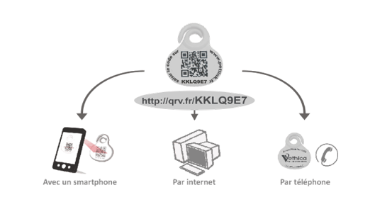 En intégrant les nouvelles technologies à notre service PetLink, nous avons développé une “médaille connectée” dernière génération. Chaque médaille Véthica est en effet marquée d’un QR Code unique, correspondant au numéro d’identification de l’animal enregistré dans la base PetLink, numéro permettant d’accéder aux coordonnées du propriétaire.