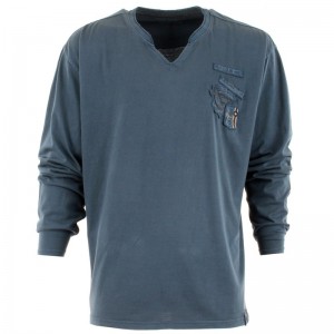 T-shirt manches longues, avec un col V original et des écussons cousus sur la poitrine