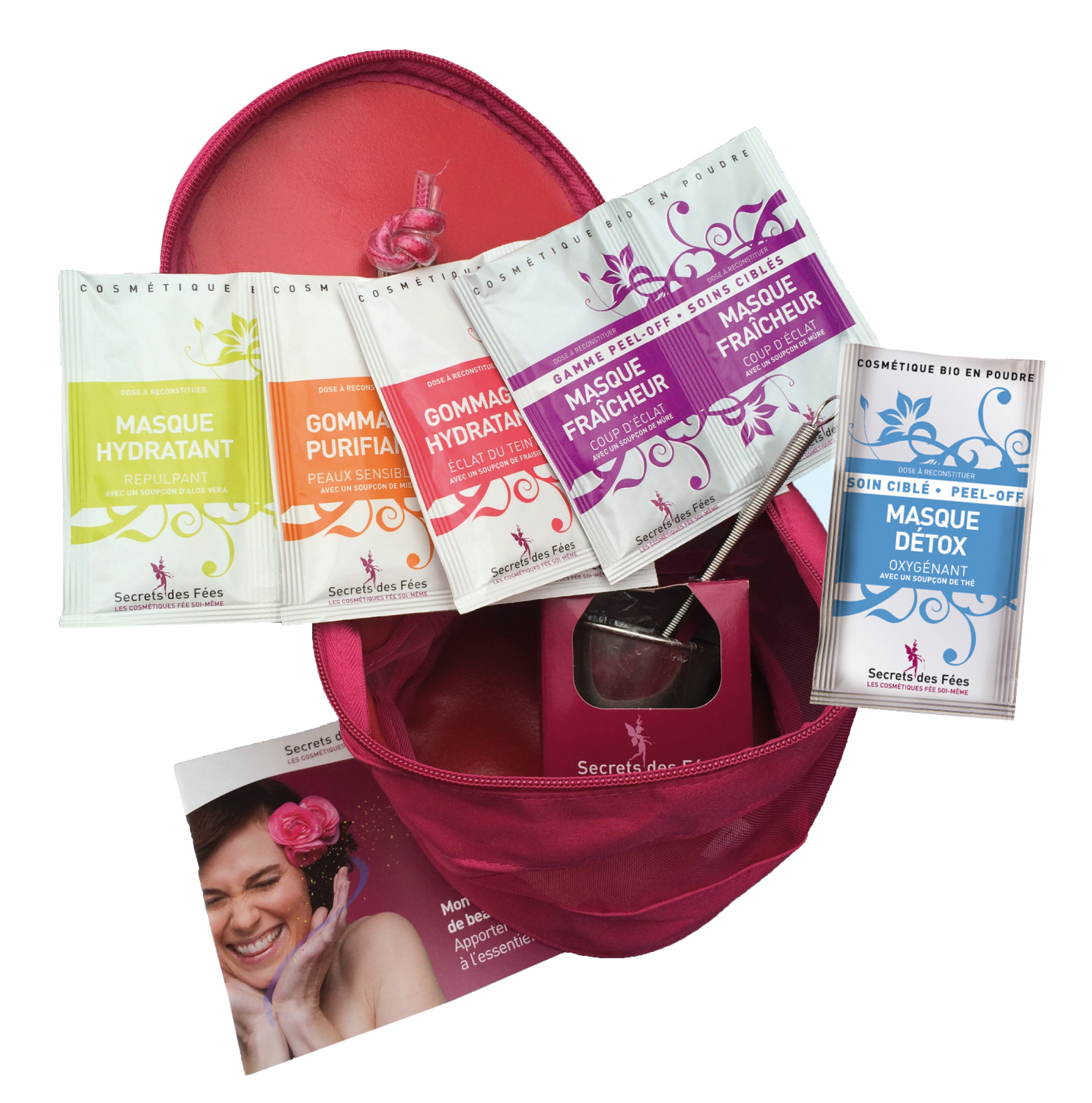 L’ensemble des produits est bien rangé dans une trousse, accompagné d’un masque peel-off détox oxygénant offert par les adorables Fées.