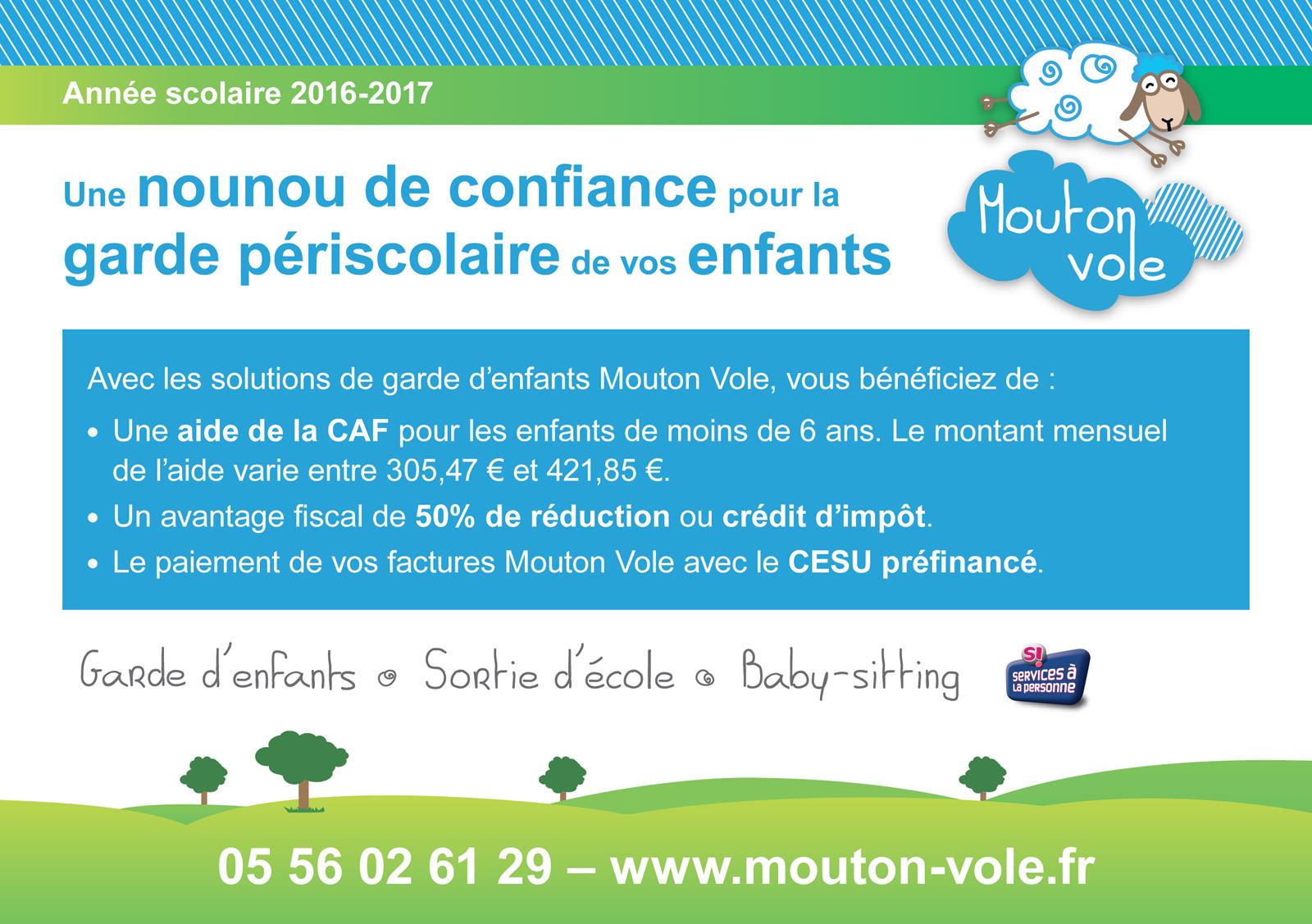 Mouton Vole lancera son activité de garde pour les enfants de moins de 3 ans à la rentrée de septembre 2016. En attendant, plusieurs solutions de garde sont déjà proposées par Mouton Vole depuis 2011 pour les enfants de plus de 3 ans dans la métropole bordelaise et en Gironde.