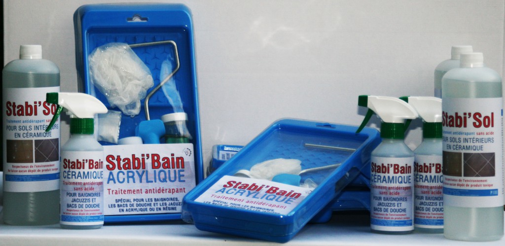 Professionnels et particuliers peuvent toutefois choisir de sécuriser leurs surfaces eux-mêmes, ce qui est tout particulièrement indiqué dans le cas des petites surfaces comme les baignoires et bacs de douche. Le produit Stabi’Bain Acrylique permet ainsi de sécuriser des sanitaires rapidement et en toute simplicité, et peut être appliqué sur de la résine, de la fibre de verre ou de l’acrylique.