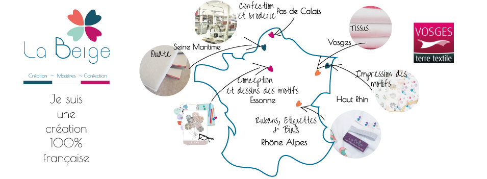 Toutes les matières premières utilisées pour les articles sont ainsi fabriquées en France, des tissus à la ouate en passant par les biais, les rubans, les étiquettes…