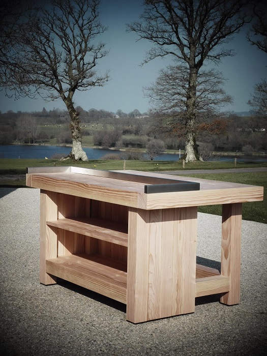 Elle est fabriquée en bois et en aluminium. Dimensions : 2 x 1 x 0,80 m.