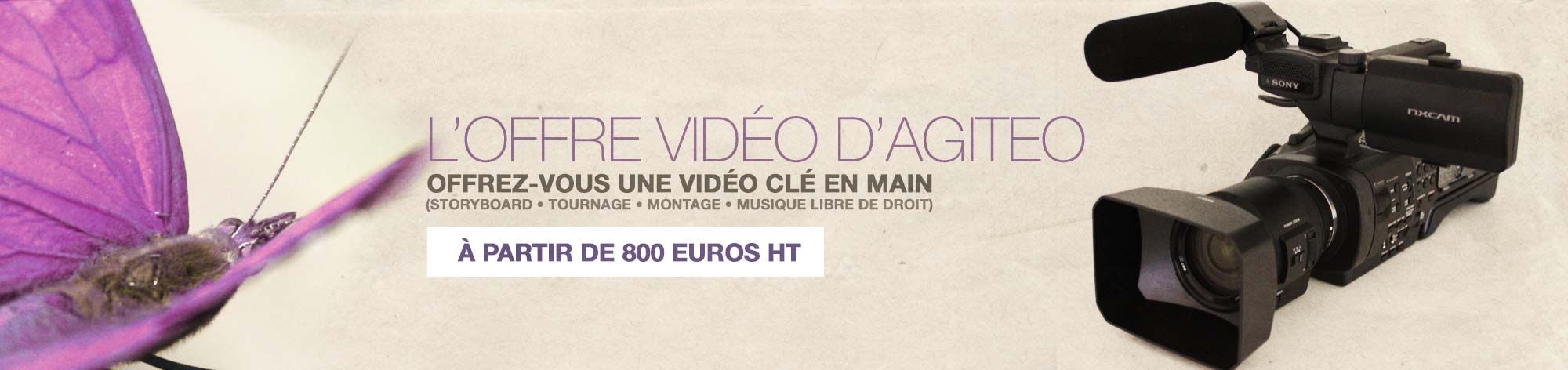 L’offre “vidéo” par Agiteo s’adresse à tous, collectivités, associations et pourquoi pas particuliers. Elle peut par exemple être idéale pour promouvoir un territoire touristique (offices de tourismes, mairies, collectivités…), un commerce (restaurant, salon de beauté, hôtel, cave, fleuriste…) ou une entreprise (service, industrie, artisanat…). Toutes les réalisations de l’atelier sont dites « clé en main » et comprennent toutes les étapes de réalisation, du script au tournage, en passant par le montage et la musique libre de droit. Les “formules vidéo” sont un concept qui permet à toute entreprise ou toute collectivité de communiquer autour de son activité à partir de 800€ HT.
