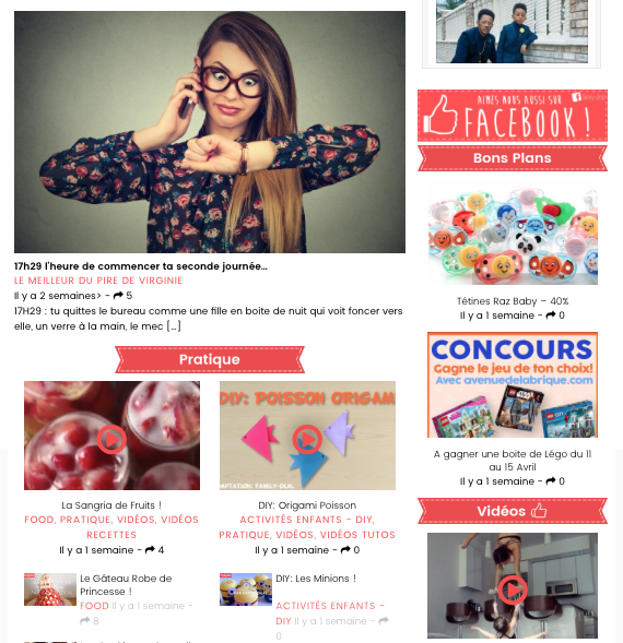 En cinq années d’existence, le site Familydeal, originellement dédié aux bons plans, s’est progressivement étoffé pour devenir le média de référence des « parents imparfaits » et de nouvelles rubriques ont fait leur apparition, telles que les vidéos food / DIY, des articles éditoriaux, etc.