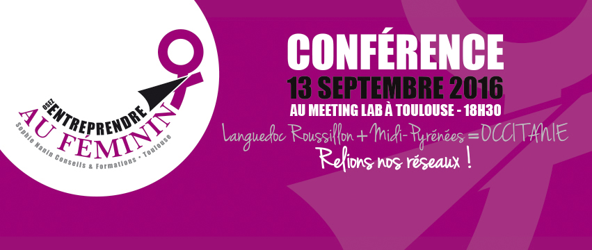 A la rentrée, le mardi 13 septembre, Martine VIGUIER consultante sur l’Entreprenariat Féminin, sa consoeur à Montpellier est l’invitée d’Entreprendre au Féminin pour réaliser une conférence sur « LR + MP = OCCITANIE Relions nos réseaux » au Meeting Lab. L’objectif est de présenter l’économie des femmes, les us et coutumes de Montpellier, les réseaux, la force du rassemblement de nos Régions. En octobre, Sophie opérera de la même façon à Montpellier.