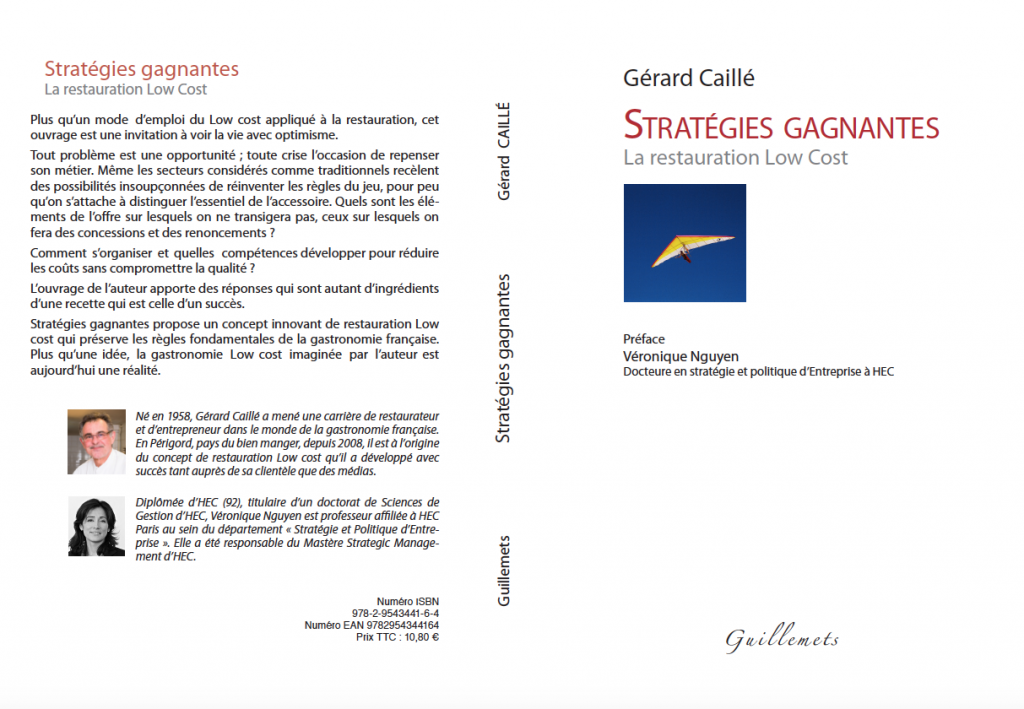 Au fil des pages de Stratégies gagnantes, Gérard Caillé transmet en effet, non pas de grandes théories inextricables, mais sa vision de la restauration Low-cost et les clés empiriques de son succès, avec l’idée que ses lecteurs pourront s’en inspirer pour les adapter à leurs cas spécifiques.