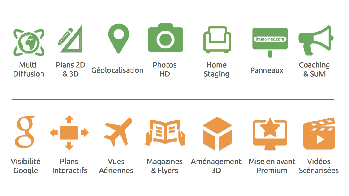 Jamais, un site de vente entre particuliers ou de marketing immobilier n’avait proposé une aussi large palette de services que immo-neo.com !