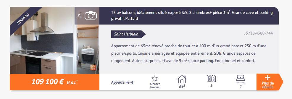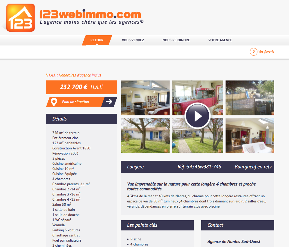- de services professionnels, dont la présentation séduisante et transparente des biens qui permet aux acheteurs potentiels de découvrir le bien en amont de la visite (via le diaporama et la fiche technique ultra complète).
