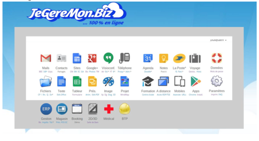 Grâce à sa gamme d’applications, JeGereMon.Biz permet à toutes les entreprises de se développer et de se faire connaître dans un environnement sécurisé, sauvegardé dans le cloud et maîtrisé. Toutes les fonctions de l’entreprise sont disponibles, parmi lesquelles :