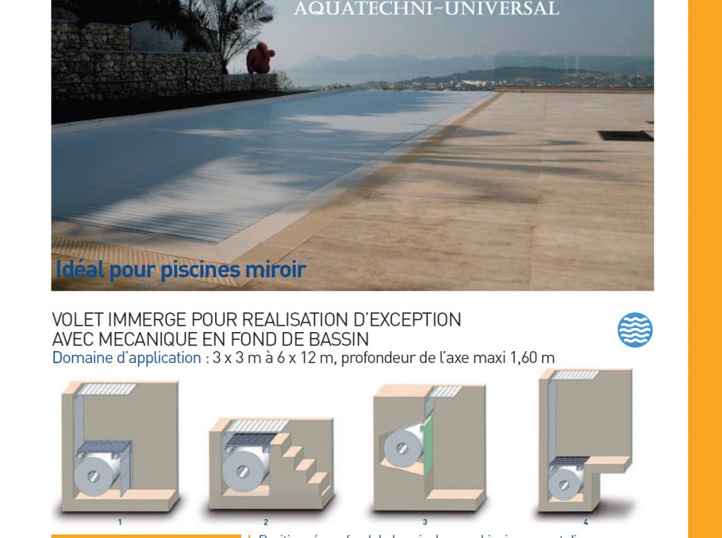 « Aquatechni-Universal vous donne tous les éléments pour construire ou faire construire votre piscine, avec les abords : margelles, plages, bac à douche, écoulement, escalier… De la piscine traditionnelle béton, aux kits complets, de la coque toute prête, à la piscine béton montée en structure polystyrène, ou en panneaux… Il suffit de suivre les instructions. »