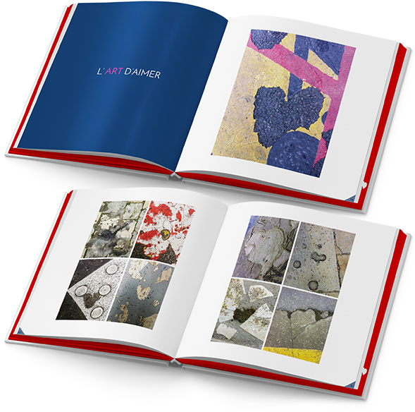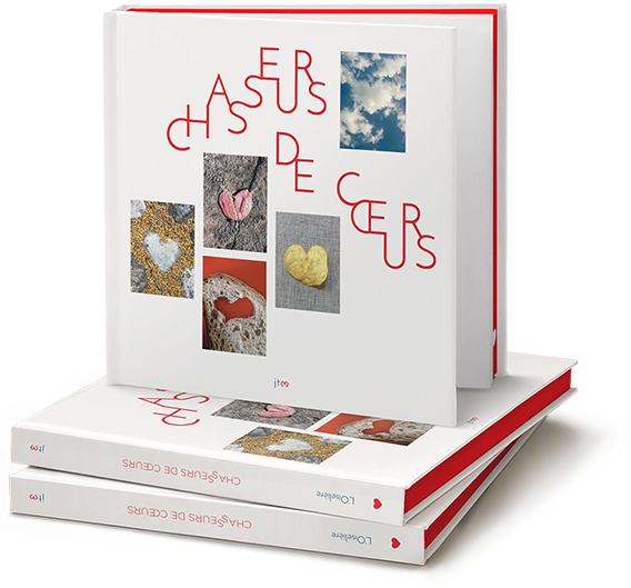 Les cœurs ne sont jamais touchés, les photos sont toutes prises avec un téléphone portable et jamais retouchées. De plus, les cœurs sont photographiés en “vue aérienne”, parfaitement à plat, ce qui enlève les perspectives, créant ainsi un effet très graphique, voire pictural. Puis, le vrai déclic a été de mettre des mots sur ces images. Elles prennent soudainement beaucoup plus de sens. Car chaque photo nous raconte une histoire : on la ressent, on la cherche, on l’imagine… La poésie est notre moteur et nous espérons que ce livre donnera envie à chacun de devenir à son tour un chasseur de cœur !