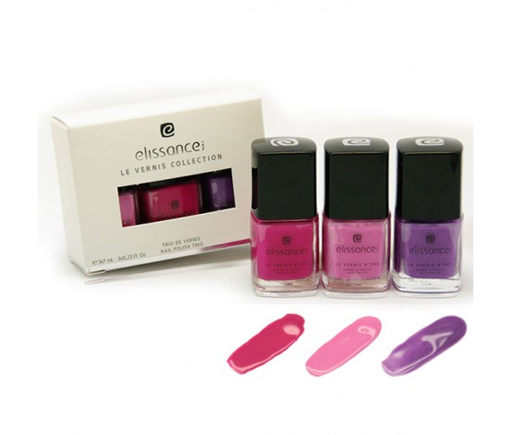 Un coffret de trois vernis à ongles dont la composition permet un séchage rapide. Des vernis qui permettent de dévoiler une couleur intense et brillante en une seule couche.