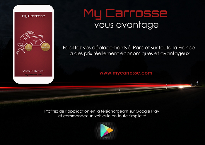 Pour toutes ces raisons et bien d’autres, My Carrosse est une application qui permet de simplifier les déplacements de personnes grâce à un chauffeur privé et une tarification unique et économique dans toute la France, de jour comme de nuit.