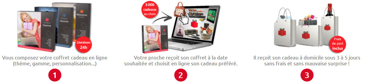 Qu’il s’agisse d’un ami, d’un collègue ou d’un membre de sa famille, le proche reçoit son coffret cadeau à la date souhaitée et choisit en ligne le cadeau qu’il préfère parmi une très large gamme de produits. Il reçoit alors son cadeau à domicile sous 3 à 5 jours, sans frais et sans mauvaise surprise.