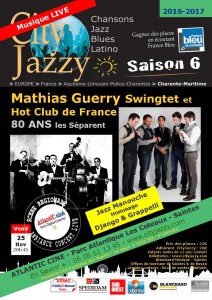 - Mathias GUERRY Swingtet JAZZ MANOUCHE Hommage « HOT CLUB DE France » à Saintes – 25 novembre 2016