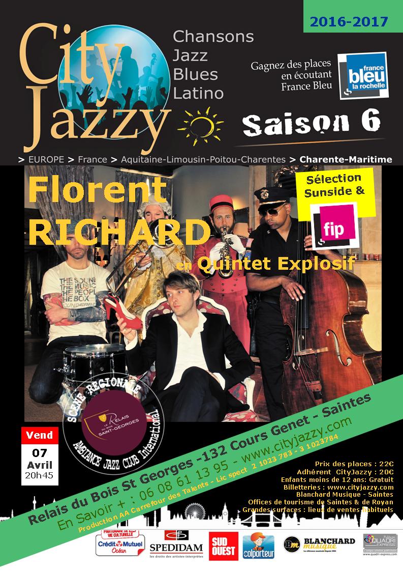 Soutenu par la radio FIP, il réalise une tournée en France et a fait, la première partie de Michel Legrand à La Cigale, à Paris. Avec la scène (Le Zèbre, Le Sunset, Le Café Laurent, etc), Florent Richard a donné à voir et à entendre, ces dernières années, une autre dimension de son talent en maniant avec une évidence déroutante l’art du quintet Pop-Jazz. Entouré de son quintet de jazz explosif, Florent Richard, derrière son piano, propose de sa belle voix grave un univers poétique et décalé.