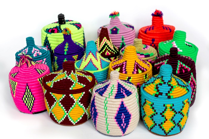 - valoriser les produits du quotidien : sacs, coussins, tapis… chaque objet est à la fois beau et pratique, il raconte une histoire. Les paniers berbères servent par exemple traditionnellement à conserver le pain !