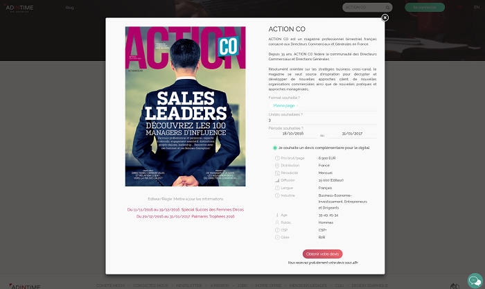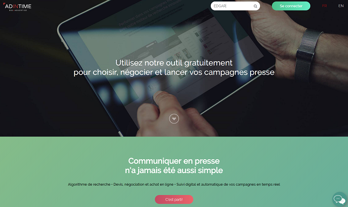 Dans ce contexte, Adintime est un nouvel outil qui permet sur une seule et unique plateforme de lancer et de suivre une campagne de publicité presse, de façon plus rapide et aussi plus économique.