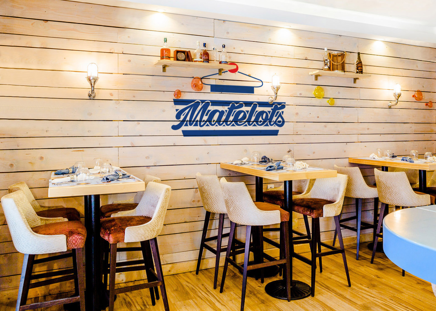 Matelots, c’est aussi une décoration et une ambiance qui donnent le ton au client dès son entrée dans le restaurant : chaleur du bois, symboles, couleurs et motifs marins… Le dépaysement est total d’entrée de jeu et se poursuit grâce à une cuisine authentique et gastronomique d’une autre contrée.