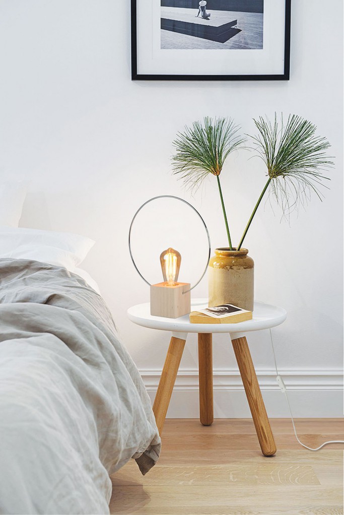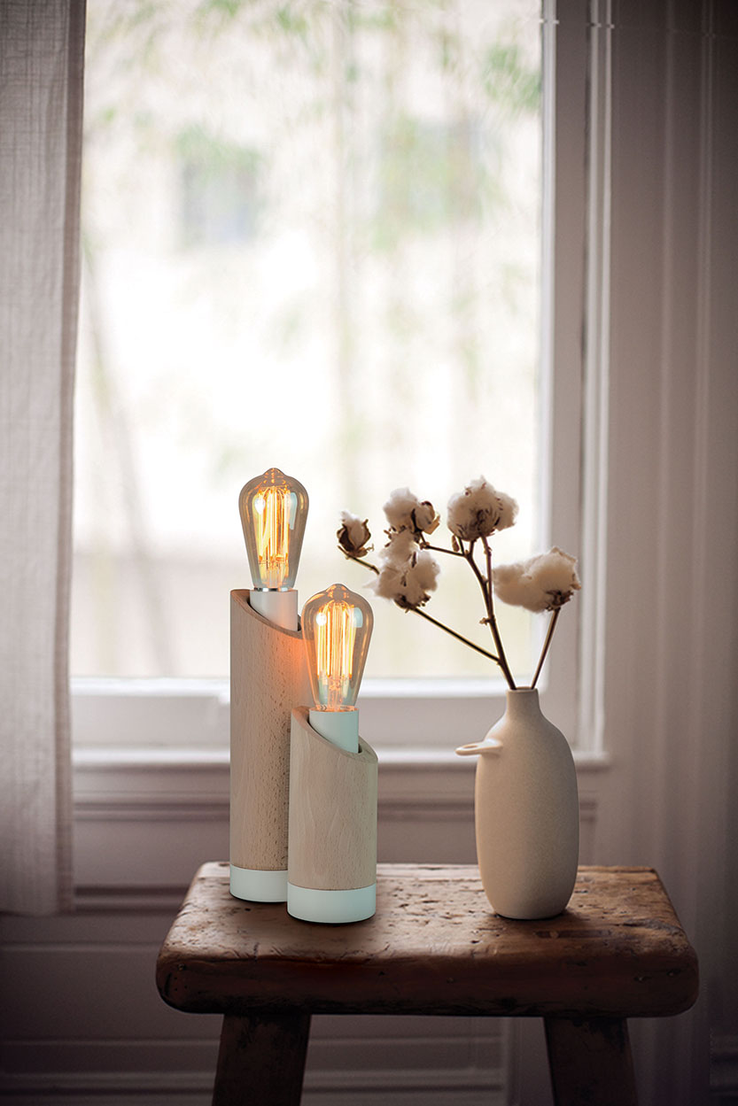 - La lampe PIMS : cette lampe originale à la finition hêtre naturel et métal laqué, donne une note très tendance à la pièce. Elle s’intègre parfaitement dans tous les décors pour un rendu naturel et nordique.