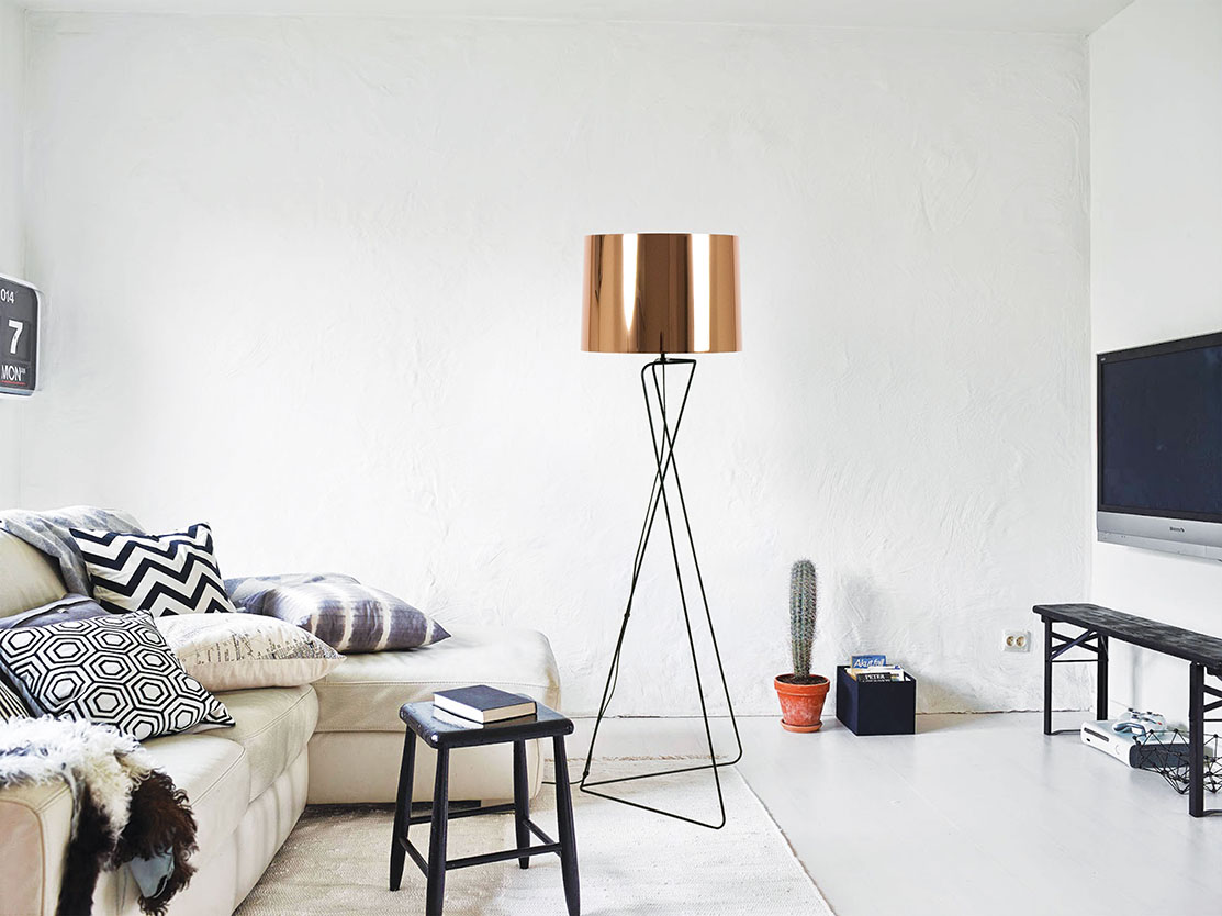- le lampadaire MARQUISE : il habille les intérieurs d’une note d’élégance dans une ambiance moderne. Sa structure en métal aérienne s’associe parfaitement à son abat-jour imitation cuivre et assure résistance et stabilité.
