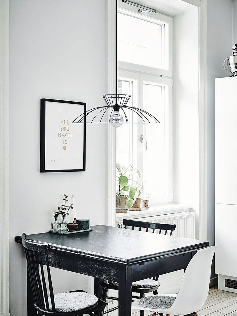 - La suspension SCARLETT : Originale et très tendance, cette suspension délivre une délicate lumière enveloppante et projette des ombres rayées sur les murs grâce à sa structure ajourée.