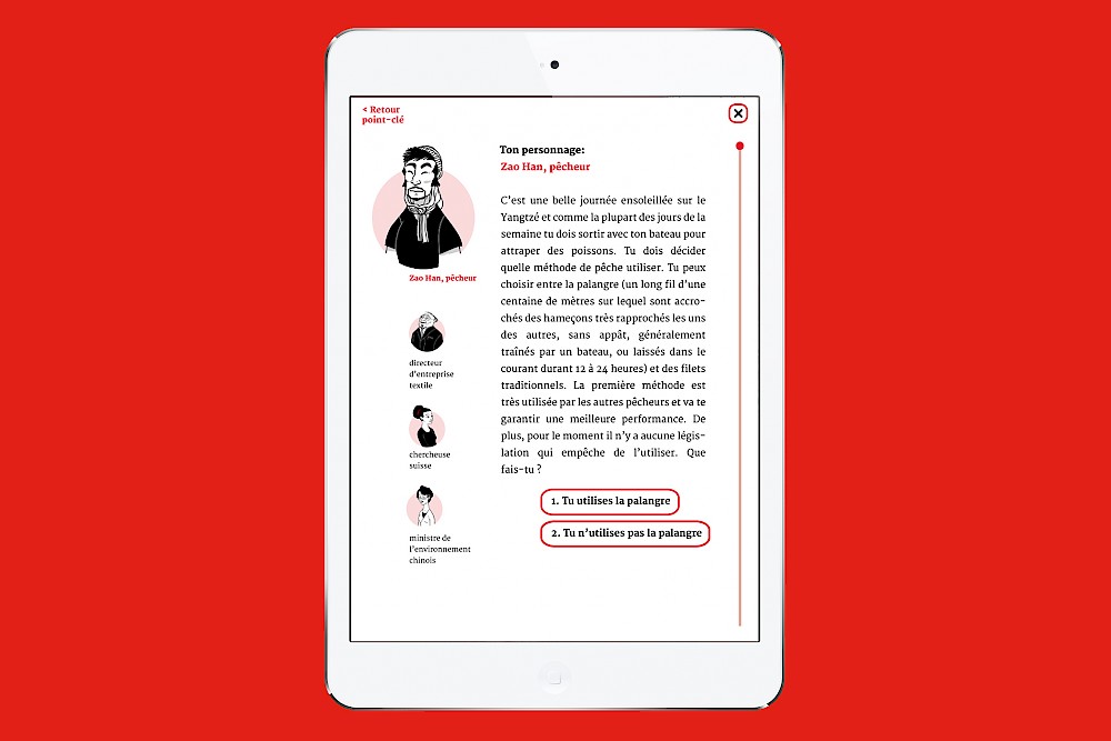 - et un jeu de rôle qui permet à travers les personnages de l’histoire de faire des choix et des actions pour influer sur la situation.