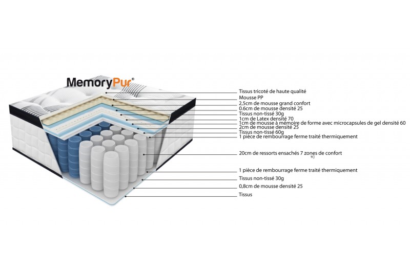Avec une maîtrise totale du circuit de ses matelas, de la conception à la livraison, MemoryPur a élaboré une gamme simple et lisible de couchages de très haute qualité, garantie pendant 10 ans, à prix abordable.