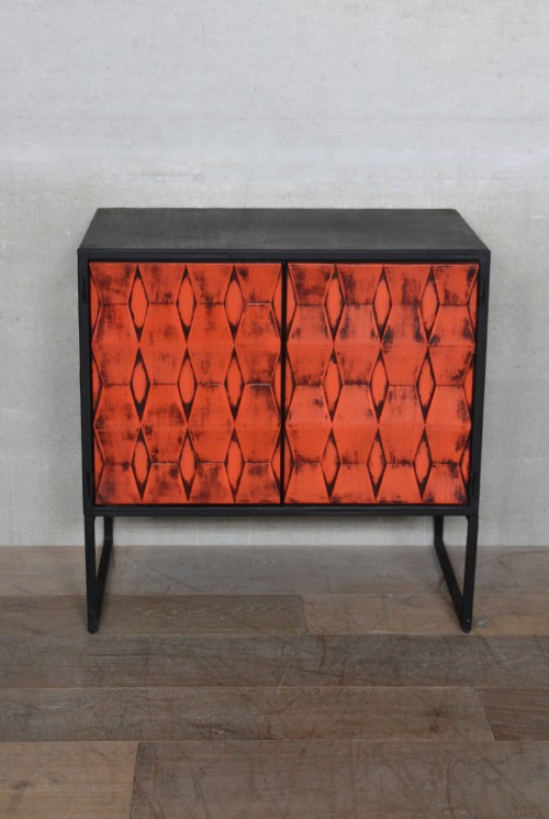 - la commode industrielle orangée et noire : idéale pour ranger, pile dans l’air du temps avec son style industriel, et parfaite pour apporter un peu de gaieté à un intérieur. Longueur : 81 cm. Prix : 119 €