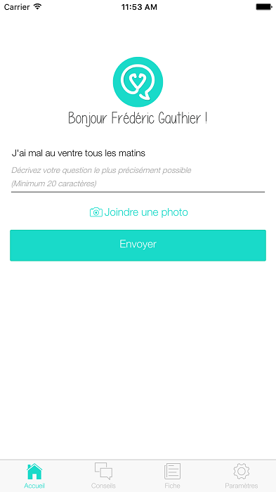 Cette application pour smartphone permet de bénéficier en quelques clics, 7j/7 et 24h/24, d’un échange personnalisé avec un professionnel de santé rigoureusement sélectionné.