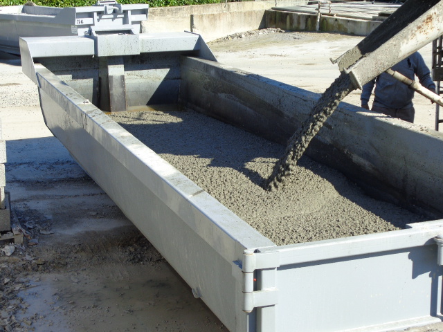 - Le moule pour valoriser les rebuts de béton frais en fabricant des blocs de 1,5 tonnes empilables et transportables à l’aide d’un élévateur standard.
