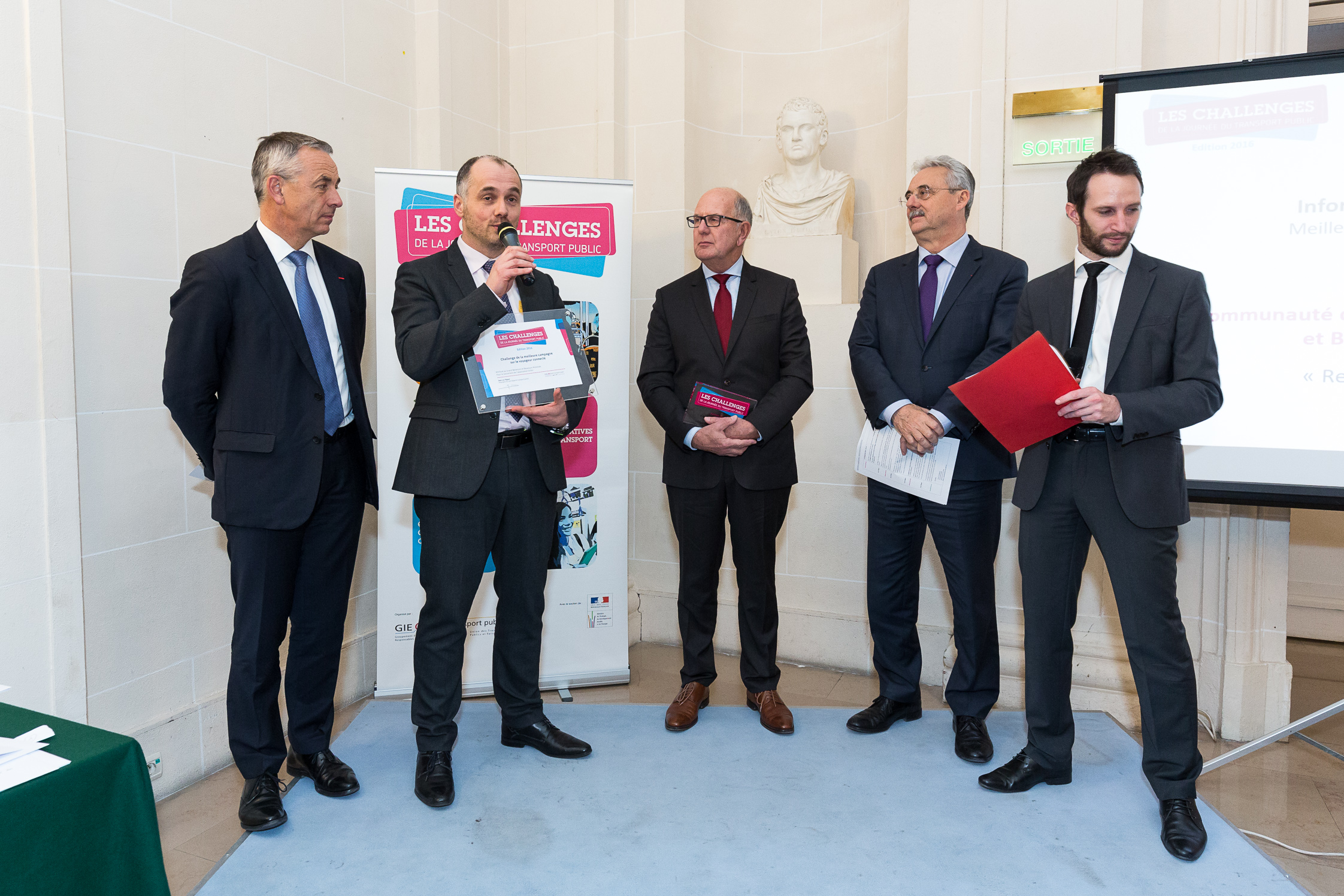 La remise des prix a eu lieu en présence du jury, composé de Cap’Com, du Comité 21 pour le développement durable, de la FNAUT, du GIE Objectif transport public, du GART et de l’UTP, mais également de Vincent Destot et Richard Dujardin, respectivement Directeur du Pôle Hauts de France et Directeur Général de Transdev France, dont dépend Corolis.