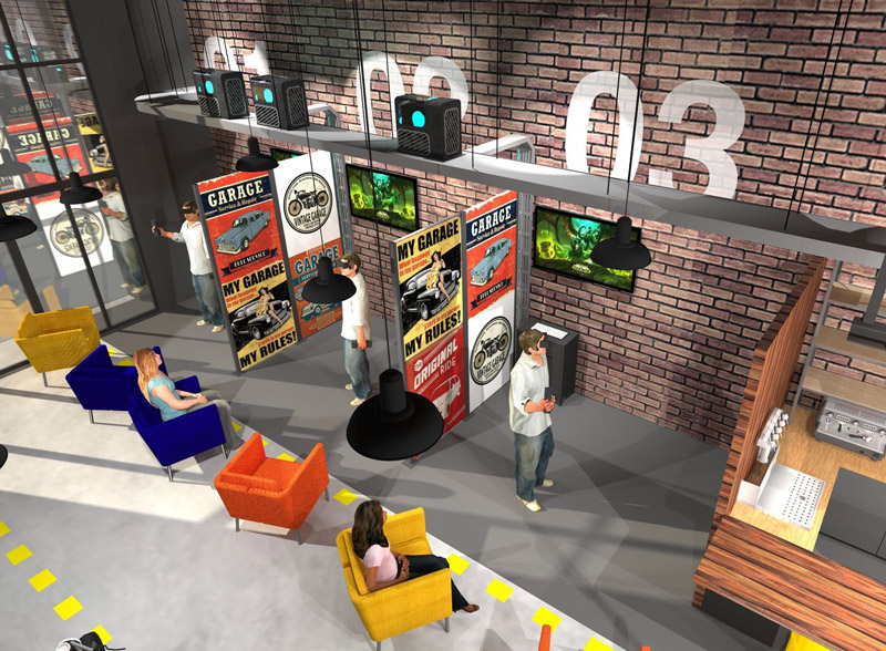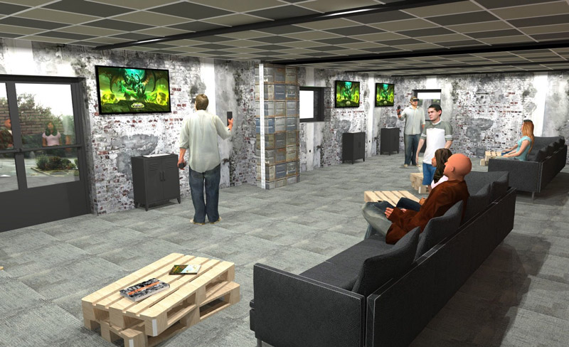 - 6 Box VR standard, de 10 m² chacun, pouvant accueillir un seul joueur à la fois. A chaque entrée de box, une confortable zone d’attente est prévue pour les accompagnateurs du joueur.