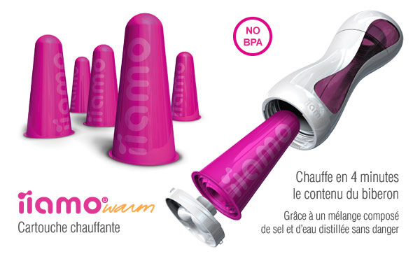 Disponible à l’unité (29,95 €, livré avec 1 tétine 1m+) ou en « pack de démarrage » incluant 1 biberon Iiamo Go, 3 tétines (une de 0m+, une de 3m+ et une de 6m+) et 5 cartouches chauffantes Iiamo Warm (44,95 €)