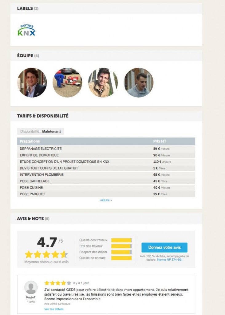 Pour cela, la plateforme a mis, pour la première fois en France dans le secteur du bâtiment, un process de vérification d’avis clients appliquant la norme Française AFNOR NF Z74-501 et un droit d’entrée stricte pour les artisans.
