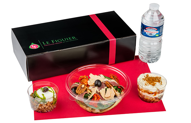 Et cette année, une jolie nouveauté fraîcheur : Le Figuier propose désormais des coffrets salades contenant une entrée, une salade, un dessert, du pain, une bouteille d’eau et des couverts en plastique.