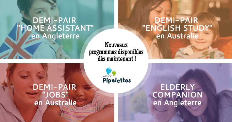 Depuis sa création en 2011, l’Agence Pipelettes accompagne de nombreux jeunes dans la réalisation de leurs séjours au pair à destination de 13 pays à travers le monde. Pour offrir au plus grand nombre l’opportunité de vivre une expérience enrichissante et répondre aux nouveaux besoins des jeunes et des familles, l’Agence Pipelettes propose désormais des séjours Demi-Pair spécifiques et Elderdly Companion.