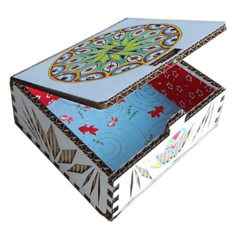 Cette boîte à bijoux en carton et papier japonais est à construire et à customiser soi-même. Fabriquée dans les ateliers de l’entreprise CART’NKIT basée dans le Tarn, elle est conçue dans une dynamique éco-reponsable.