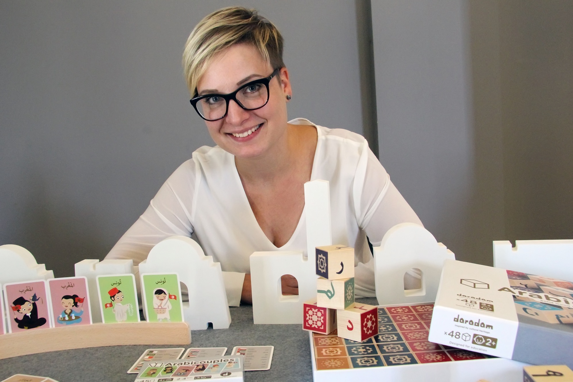 Ce jeu de cubes intergénérationnel permet d’apprendre la langue et l’écriture arabe.