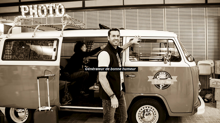 Et lance le SELFIE-BUS : un Mini Bus Vintage qui se déplace au cœur des événements et se transforme en véritable Photobooth, une cabine équipée d’une borne photo interactive.