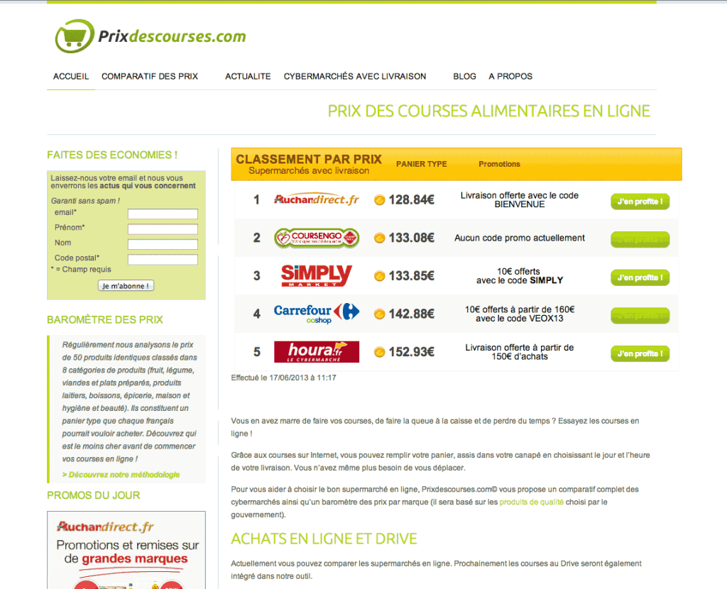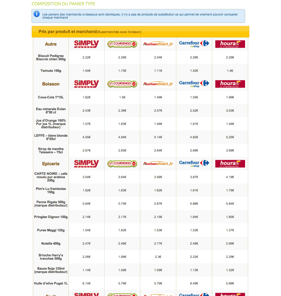 Comme de plus en plus de Français, Cédric et Vincent font leurs courses en ligne et ont voulu comparer les prix des supermarchés en ligne. Seulement voilà, aucun site n’a pu satisfaire leurs attentes… « Certains sites sont accessibles seulement après inscription en ligne, d’autres comparent le beurre de la marque A avec celui de la marque B, d’autres encore ne répertorient que peu de marchands », regrettent les deux hommes. « Dans certains cas, il est même nécessaire de constituer un panier de courses pour ensuite passer commande sur le site de la grande surface… »