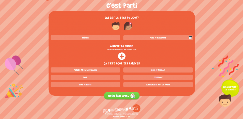 Fete-enfant.fr a pour mission d’offrir aux parents et aux enfants des outils permettant de faciliter l’organisation d’un anniversaire. Tout se passe en ligne, sur le site www.fete-enfant.fr, qui est tout aussi simple à utiliser que ludique et coloré.